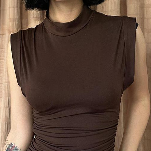 The fine stretch fabric elegantly hugs the upper body, while the side gathers gently accentuate the waist – for a feminine, defined silhouette with style.