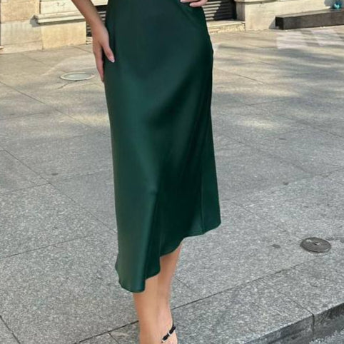 The soft, flowing satin fabric caresses the legs with every step, ensuring an elegant, smooth movement. The midi length lends the look timeless sophistication—ideal for summer evenings or stylish events.