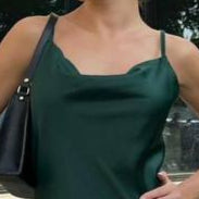 The elegant emerald green waterfall neckline lends the top a flowing, sensual touch. The delicate spaghetti straps create a delicate, feminine look—ideal for warm summer evenings in style.